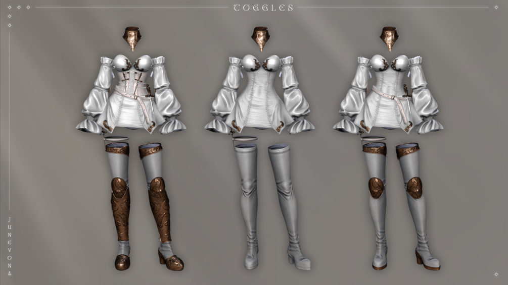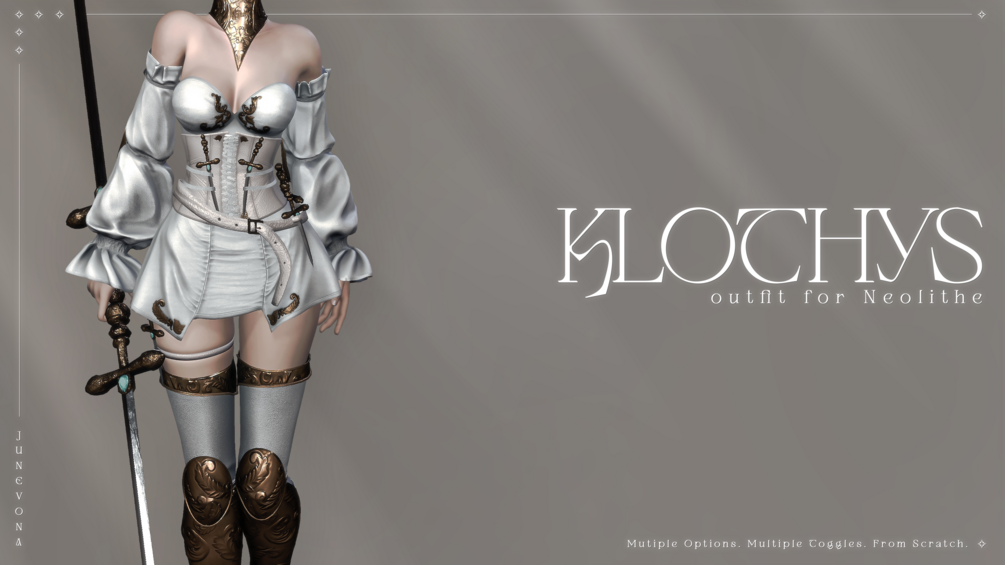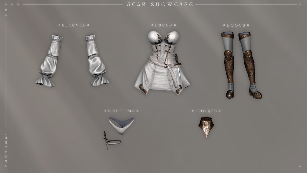 It features a dress with a corset, bottoms with a dagger harness, arm sleeves, a choker and a pair of boots - as well as weapons sets for Sage, Ninja, Paladin and Viper!