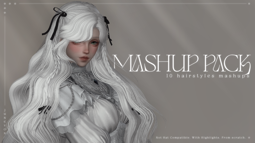 This pack has multiple highlights versions per hair. It also has toggleable bows where bows are present!
